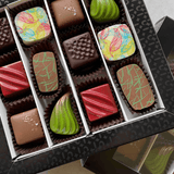 Ingredients: MILK CHOCOLATE (sugar, cocoa butter*, powdered whole milk, cocoa mass*, sunflower lecithin, vanilla), cream, SEMI-SWEET CHOCOLATE (cocoa mass*, sugar, cocoa butter*, sunflower lecithin), organic cane sugar, WHITE CHOCOLATE (sugar, powdered whole milk, cocoa butter*, sunflower lecithin, vanilla), butter, invert sugar, glucose, apricots, passion fruit, praline (hazelnuts, sugar, soy lecithin), liqueurs, cocoa butter*, hazelnuts, honey, yellow sugar, Earl Grey tea, sea salt, pectin, sunflower lecithin, vanilla bean paste (sugar, water, pure vanilla extract, vanilla bean, tragacanth gum), nutmeg, fleur de sel sea salt, star anise, lavender, sodium bicarbonate, citric acid, water, colours (soy lecithin). Contains: hazelnuts, milk, soy. May contain: peanuts, almonds, walnuts, pecans, pistachios, eggs.