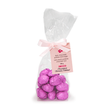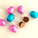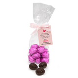 Smooth and nutty chocolate praline eggs in a couverture dark chocolate shell, hand-wrapped in colourful confectionery foil.