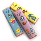Dark (vegan), milk, or white couverture chocolate bar in special Easter wrapping
