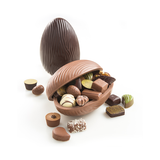 Chocolate Easter Egg-shaped shells filled with 14 assorted dark and milk chocolates.