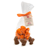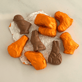 Peanut butter-filled milk chocolate in bite-sized bunny and chick shapes.