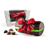Dark Chocolate Yule log shell filled with 24 assorted dark and milk chocolates.