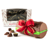 Choose from a dark chocolate shell or a milk chocolate shell filled with assorted chocolates. Continuing a tradition begun in 11th century Europe involving blessing and burning a freshly cut log in the family hearth on Christmas Eve, our exquisite chocolate Yule log filled with an array of delectable chocolates is a delicious step forward in the ancient Yule log ritual. Added bonus: no splinters.