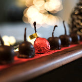 These are very different from every bright red Maraschino Cherry or sugary Cherry Cordial you've tasted. We start with the very best organic cherries from British Columbia and soak them in liqueur for at least 100 days. Next, we hand-dip each cherry in fondant, and then, in a separate step, we hand-dip each cherry several times in semi-sweet chocolate. By carefully handcrafting this treat, we can ensure the perfection for every chocolaty cherry. Even after all that, the magic continues. Over time, the fruit gradually turns into liquid, leaving only a tiny bit of the original cherry fruit behind, and the final result is a delicious, drippy, boozy, one-bite adult treat for the holidays. Order this treat for yourself, a friend, a relative, or another special person in your life!