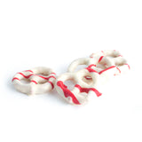 INGREDIENTS: WHITE CHOCOLATE (sugar, powdered whole milk, cocoa butter*, sunflower lecithin, vanilla), PRETZELS (unbleached enriched wheat flour, malt, salt, soybean oil, yeast), colours, peppermint extract. Contains: wheat, barley, milk, soy. May contain: peanuts, tree nuts, eggs.