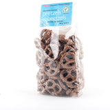 Milk couverture chocolate enrobed pretzels. Sweet and salty with a captivating crunch.