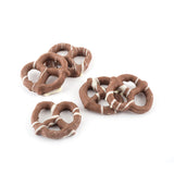 Ingredients: MILK CHOCOLATE (sugar, cocoa butter*, powdered whole milk, cocoa mass*, sunflower lecithin, vanilla). PRETZELS (unbleached enriched wheat flour, malt, salt soybean oil, yeast), WHITE CHOCOLATE (sugar, powdered whole milk, cocoa butter*, sunflower lecithin, vanilla). Contains: wheat, barley, milk, soy. May contain: peanuts, hazelnuts, almonds, pistachios, walnuts, pecans, sesame seeds, eggs.