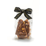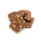 Slabs of couverture milk chocolate with almond, hazelnut, and walnut inclusions.